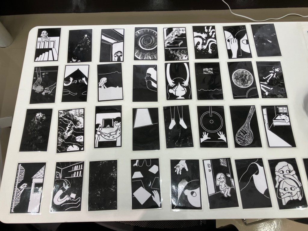 By listening carefully, and by placing the cards together into the 9 groupings, each user constructs a unique interpretation of a troubled home based on their own personal understanding of the sounds they hear and the cards that trigger the audio.
